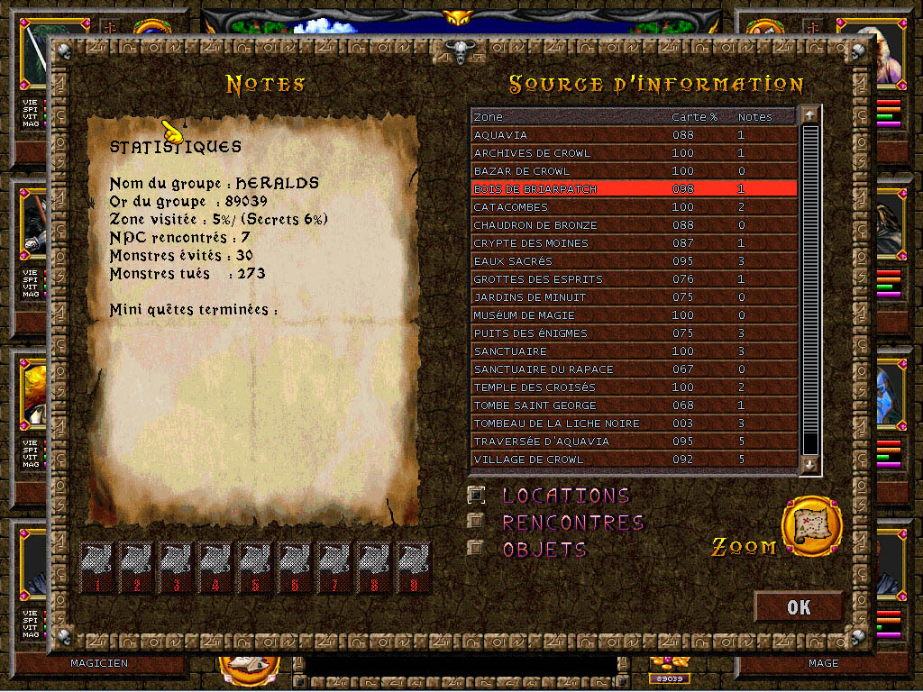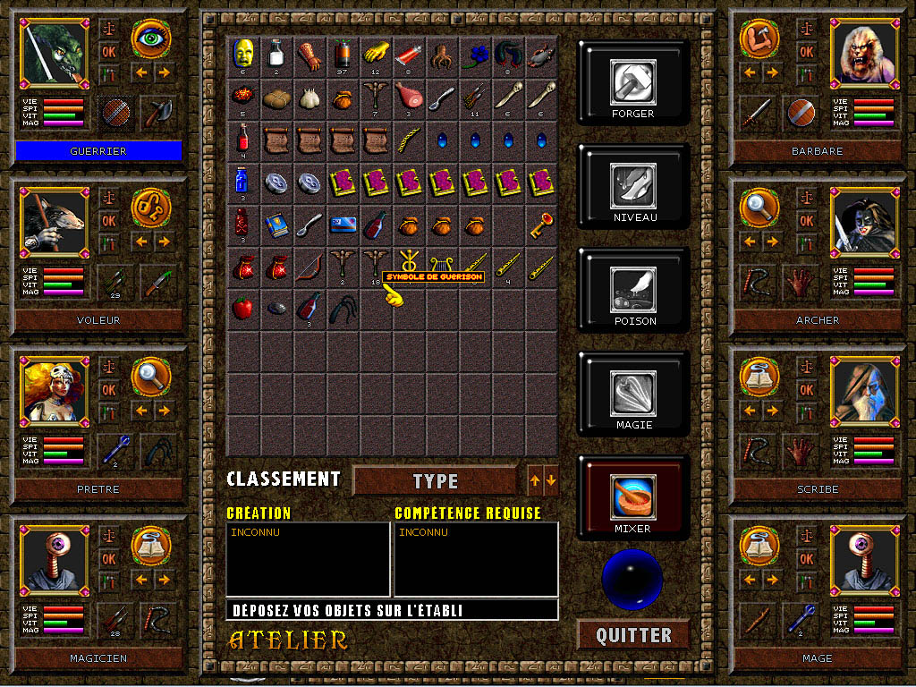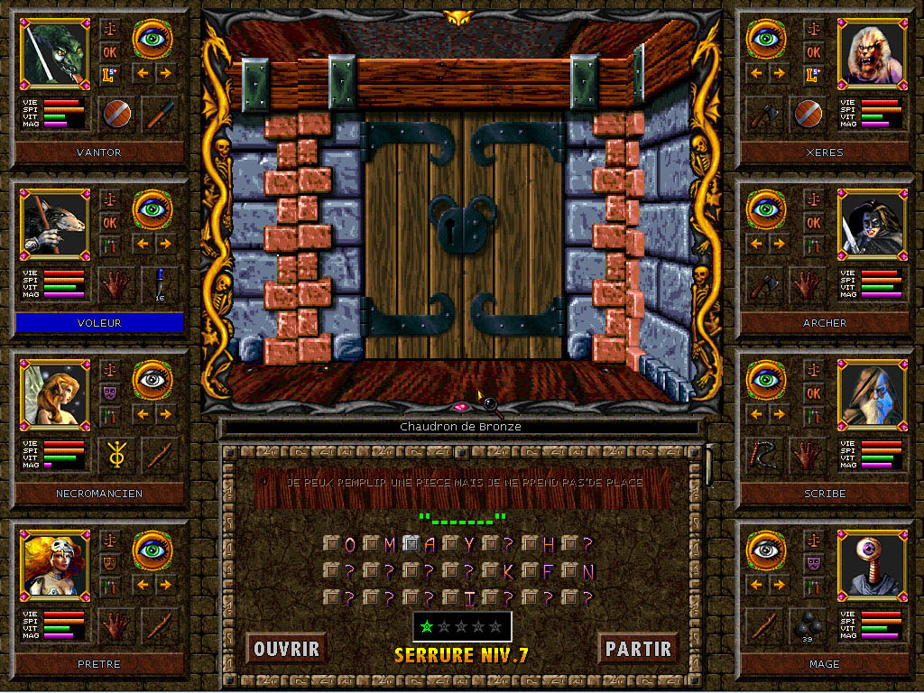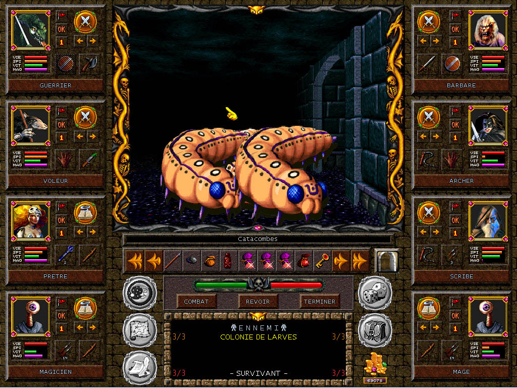 Un jeu qui me semblait impossible à traduire. Les différentes configurations dans une partie n'ayant pas toutes été testées, un bug est toujours possible, alors faites des sauvegardes ou jouez à